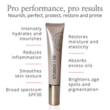 Harnessing the brilliance of Dr. Barbara Geusens, a bio-engineer specialising in genetics, molecular biotechnology, and dermatology, this scientifically advanced formula is exclusive to Studio10.